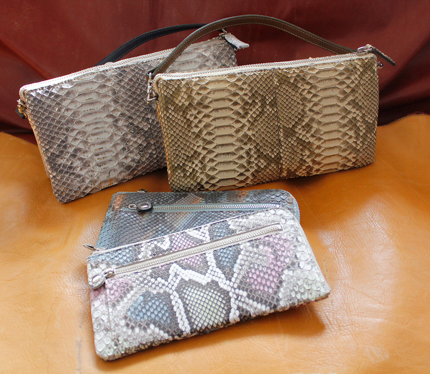 ダイヤモンドパイソンは、トカゲと同様に、バッグ類、靴、ベルト等に幅広く利用されています。